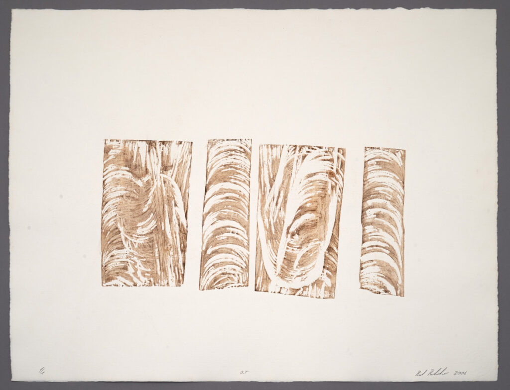 Serie von Eichendruckunikaten – Verbindungen Die Serie Verbindungen gehört zu einer Gruppe von Drucken, die aus dreidimensionalen und reliefartigen Arbeiten hervorgehen. Die Drucke übertragen skulpturale Strukturen in die Fläche und machen räumliche Prozesse sichtbar. Dabei arbeite ich eng mit den materialimmanenten Eigenschaften der Eiche, insbesondere mit der natürlichen Reaktion zwischen der im Holz enthaltenen Gerbsäure […]